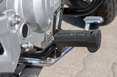 Az első lábtartó fix, valaki megborult előttem a tesztmotorral, el is hajlott