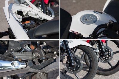 A Honda CBF125 erősségei: apró tárolóhely az ülés alatt, a normális tanksapka, a felhejló lábtartó és a kétdugattyús fék