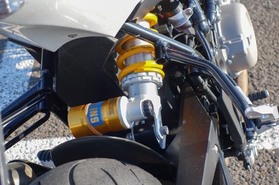Magasságban is állítható az Öhlins gátló. De minek van a gáztartályon befőttes gumi?