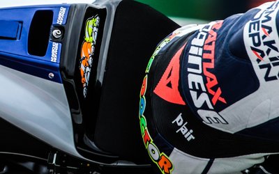 Rossi öccse, Luca Marini vidáman nézi testvérét a pálya széléről. Úgy tűnik, hogy hamarosan őt is a világbajnokság állandó szereplői között láthatjuk.