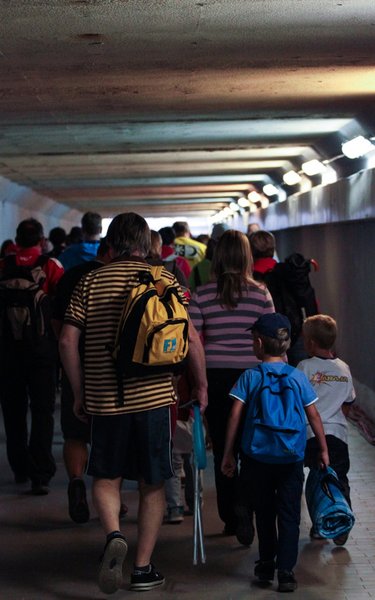 Vasárnap kora reggel megindul az őrület. Hat óra körül már tömegek vándorolnak a pálya szélére egy-egy jobb hely reményében. Itt épp, a célegyenes alatti alagútban hömpölygő embereket sikerült megörökíteni.