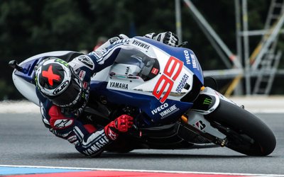 Jorge Lorenzo mesterien fűzi át Yamaháját egy kanyarkombináción.