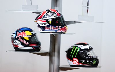 A MotoGP jelenlegi mezőnyéből pont a képen látható fejfedők viselői tornyosulnak a vetélytársak fölé. (Pedrosa, Marquez, Lorenzo, balról jobbra)