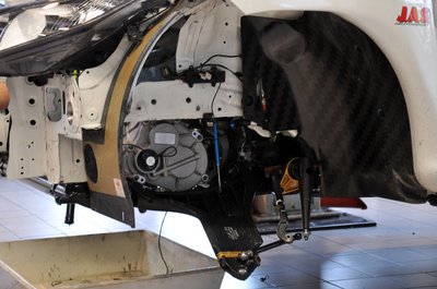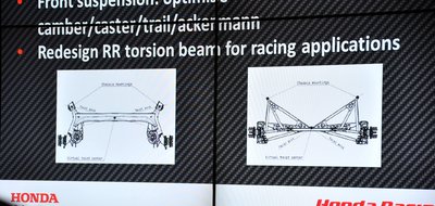 Balra a széria hátsó futómű, jobbra a versenyautóé