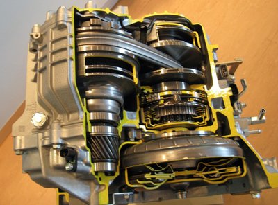 Íme a CVT-váltó belseje. A lavór jobb oldalt a hidrodinamikus nyomatékváltó
