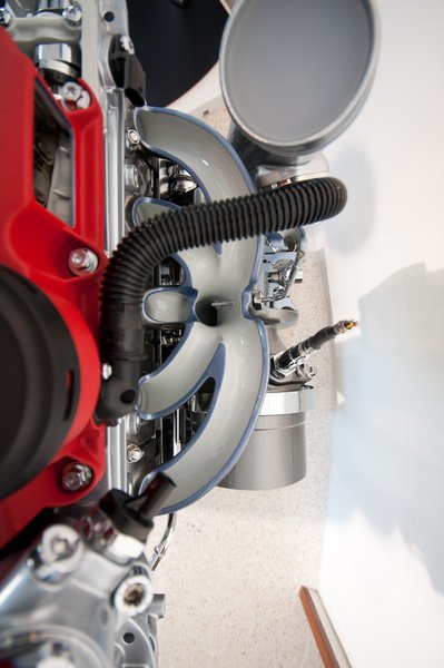 A turbina kilépő oldalán rögtön beleszalad a gáz az első katalizátorba