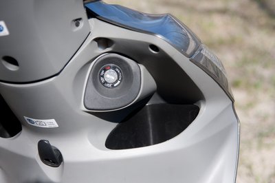 Ott pont elfér a tárcsalakat. Kár, hogy nem a gyújtáskapcsoló nyitja a sisaktartót