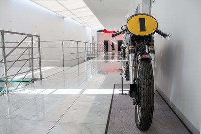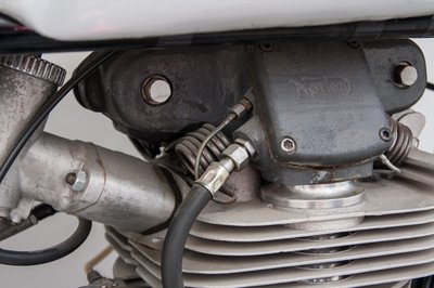 350 köbcenti szólt itt. Biztos csendes volt, bár az ötvenes évek versenymotorjainak semmiféle zajelőírásnak nem kellett megfelelniük