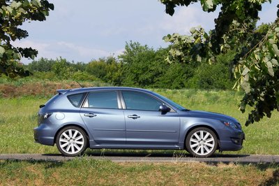 Úton-útfélen régi Mazda 3-asokba botlik az ember. Ezen itt jól szemléltehető, hogy jó öt centiméterrel alacsonyabb az MPS, mint a többi kivitel
