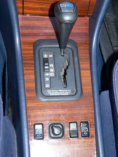 5 sebességes váltó előválasztó karja. Ha a hamutartónál van a E-betű, akkor ötös