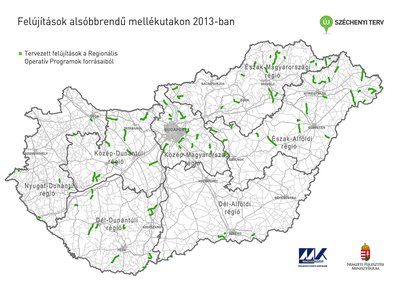 A 2013-ban felújításra kijelölt útszakaszok a Magyar Közút Zrt. térképén