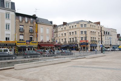 Itt vártunk valahol a buszra, a Peugeot épület előtt
