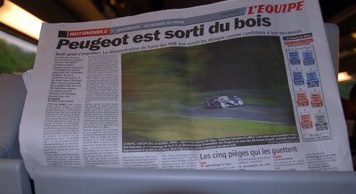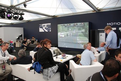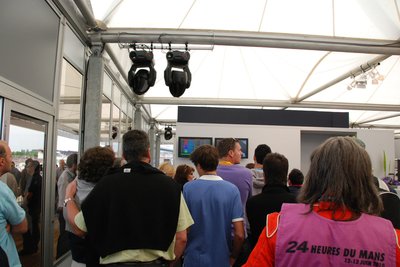 Végre odabent. A Peugeot központi épületének teraszáról remek kilátás nyílt a célegyenesre