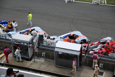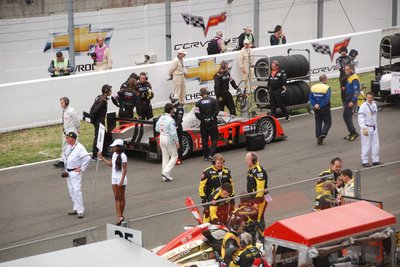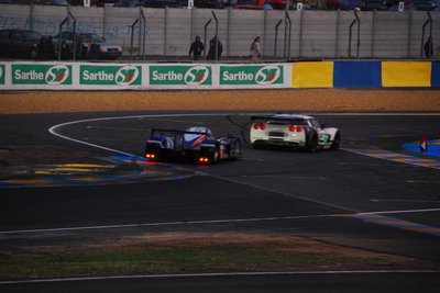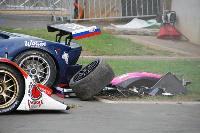 Ez a Corvette durván 180-as tempónál vesztette el a tapadást és durrant bele a palánkba. Kicsit eltartott, de visszajött a boxba, ahol óriási pajszerekkel és kalapácsokkal verték le róla a maradék műanyagot. Aztán még kiment pár körre, de nem bírta végig.
