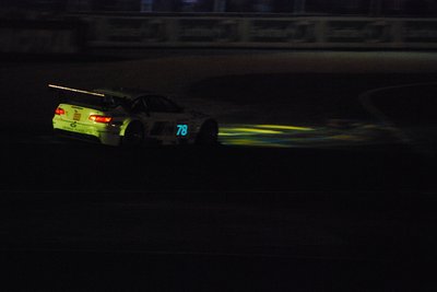Hajnal, de nagyon. Egy GT2-es Porsche zúz el a célegyenes felé