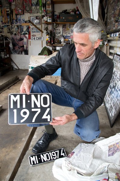 Feri készített saját, régi olasz rendszámot is. "Az első nem sikerült valami jól, de a hátsó elmegy"