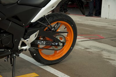 A festés nagyon jól sikerült: az ügyes formaterv miatt egy számmal nagyobbnak tűnik a CBR125