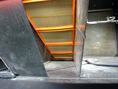 Nyolc légszűrő, fektetett V-alakba rendezve, ez az alsó szára. Óriási felületre van szükség