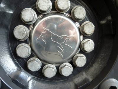 A kisebbfajta Holset-turbó, előtte jól látszik a trombitaszerű szűkítő