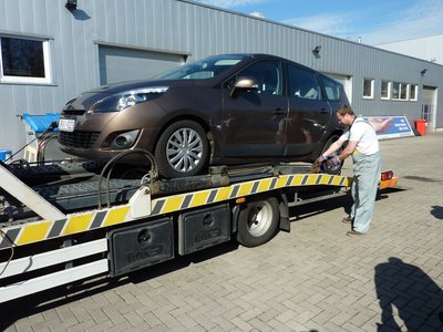Szerencsére nem utaztunk messze, a következő pár órára a közeli Renault-szalon és szerviz lett az otthonunk