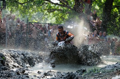Egy résztvevő halad motorjával a Siroki Motoros Találkozón rendezett iszapgyorsulási versenyen 2012. július 28-án. MTI Fotó: Komka Péter