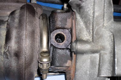 A turbófeltöltő olajellátó csöve – tele kokszosodott olajjal