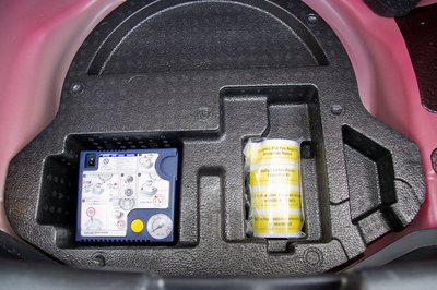 Szimbolikus csomagtér, máshol kesztyűtartónak hívják az ilyet. Ellenben a Twingóé még kisebb