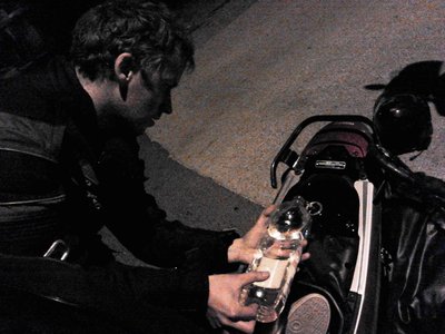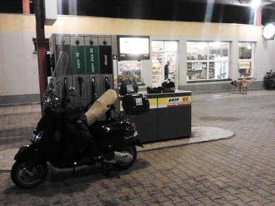 Berhidán, a már bezárt, de csak miattunk még egy kicsit túlórába menő benzinkúton tudtam tankolni, venni benzint a Dani motorjához, aki nyolc kilométerrel odébb, Sólyon dekkolt a kutyavonyító sötétben