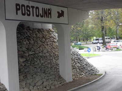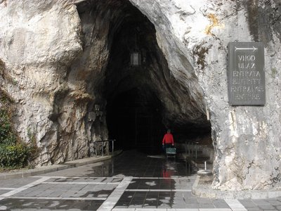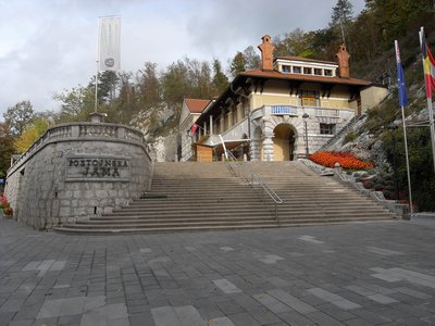Végre, a világhírű postojnai barlang, benne kisvasúttal! Mindjárt bemegyünk