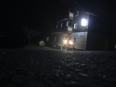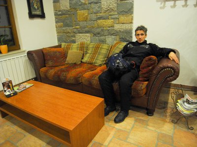 Ezt pillantottuk meg a szörnyű, ködös, orrunkigselátós szerpentin túloldalán, valamikor este fél kilenckor. Ahogy Dani mondta - erre a panzióra rá volt írva, hogy itt alszunk