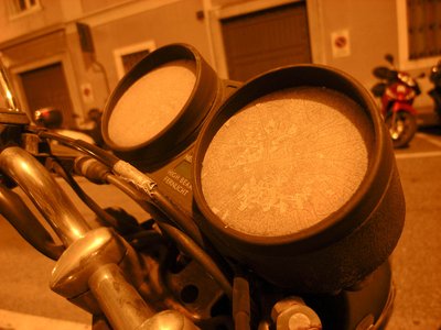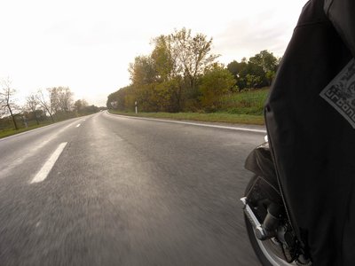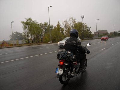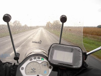 Sokat azért nem látni esőben a plexin át. Éjszaka már eldöntöttem a motort és úgy kukucskáltam ki mögüle száz kilométeren át