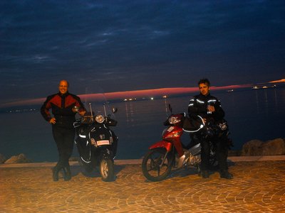 Kicsit megfagyva, de innen nyélgázon húztunk haza. Dani valamivel egy előtt ért haza, én kicsivel háromnegyed után. Megtettünk 595, illetve 611 kilométert aznap. Ez már elég sok ilyen kis robogón