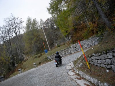 Tartósságilag biztosan jobb így, de motorozásilag elég szörnyű, hogy minden hajtűkanyart macskakövekkel raktak ki