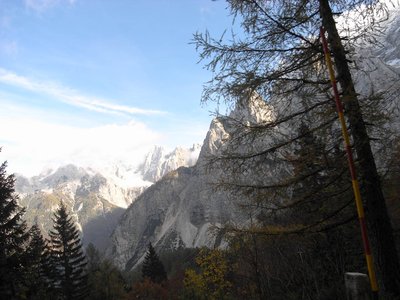 Itt meg kellett állnunk, nézzék a hegyeket. Az a Triglav-csoport, a vezetékekért pedig elnézést kérünk