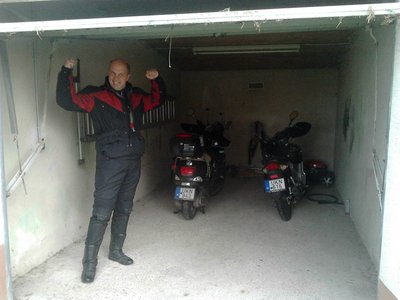 Ebben a garázsban aludtak a motorok. Igazából egy eredetileg talán lakásnak szánt, ma asztalosműhelyként szolgáló terem volt