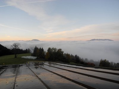 Szürreális reggeli látvány a szobám ablakából. A köd később felszállt, beburkolt bennünket, de mi akkor alábuktunk