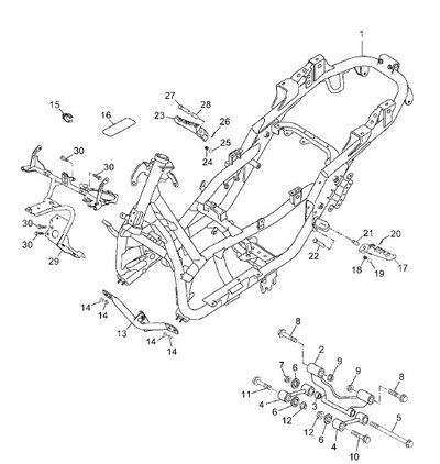 Háromszög lengővilla, csomagrögzítő fül, utaslábtartó, háttámla