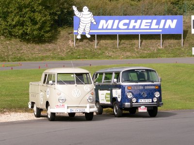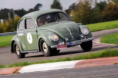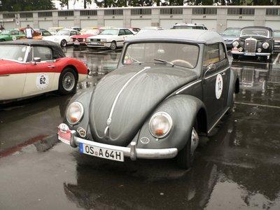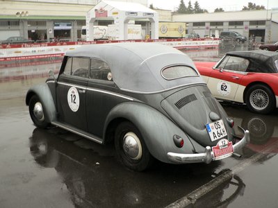 Luxemburgban vagyunk, a Good Year kísérleti pályályán. Az 1951-es. perecablakos bogarat Memminger papa küldi. Nézzék a hátsó gumit! 64. lett. Velük is találkozunk szinte minden versenyen.
