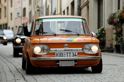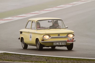 Nusi, alis NSU 1000 C. Motorja 1200 ccm, ca. 65 LE. 6 nap alatt 3400 km-t nyomtunk le vele. Extrák: nincs fűtés, egyfokozatú ablaktörlő.