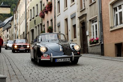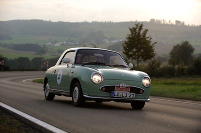 Nissan Figaro (1991) az Eifel Classic mezőnyében. Egyáltalán nem tűnt kakukktojásnak, szépen beleillett a képbe.