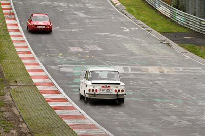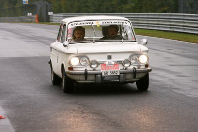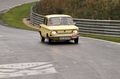 Nürburgring, Nordschleife. 850-es Fiat igyekszik, de kikéste az idejét. Az annyi, mint 500 hibapont. Jövőre, ha majd száraz lesz, lehet ismét próbálkozni.