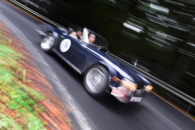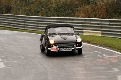 27.-ek lettek a Triumph Spitfire utasai. 2500-as, 140 lóerős motorjával és spéci futóművével állva hagyott minket a Nordschleifén.