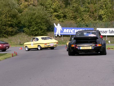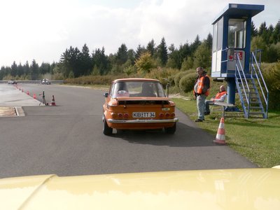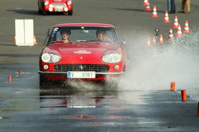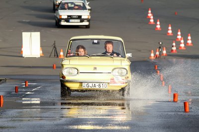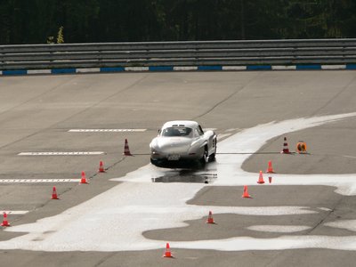 Gyakorlás közben a (ki tudják mondani?) Fahrsicherheitszenrum II. pályán.