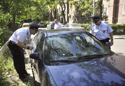 Rendőrök vizsgálják az egyik autóvadász által megtalált lopott autót a X. kerületi Pongrácz úton