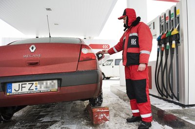 Magyar autót tankolnak egy asztélyi benzinkúton