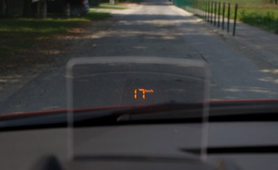 Nem az ablakra, hanem egy felugró műanyag lapra vetíti az információt a HUD