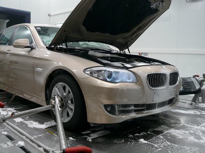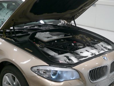 F10 hófúvásban: kitámasztó rudakkal rögzítik az autót a mókuskeréken