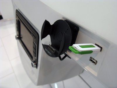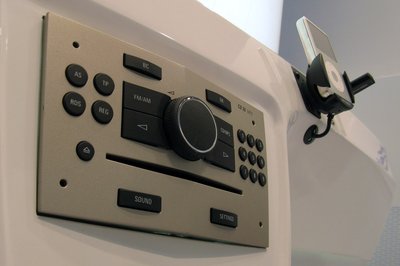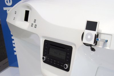Stilizált műszerfal, kijelzővel, iPod-tartóval és fejegységgel