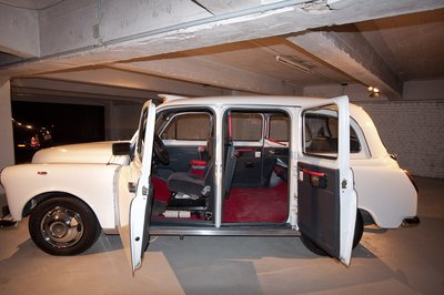 A londoni taxi, bár van rajta valami furcsa. Nem fordítva szkennelt kép, hanem az autó balkormányos. Lehet, hogy nem is londoni
