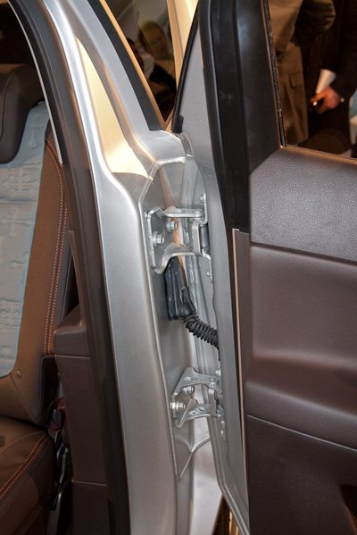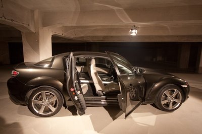 Az RX-8 B-oszlopa tulajdonképen a hátsó, rövidke ajtóban rejtőzik, ez véd oldalütközéskor. Csakhogy így a hátsó ajtó nem nyitható ki az első nyitása nélkül